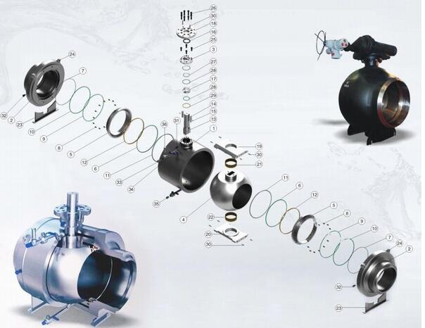 5、整體式全焊接,等徑及變徑通道,采用固定球及浮動球,雙活塞效應密封系統(tǒng),自動注入密封劑式軸承。